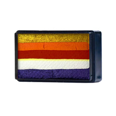Create the perfect Halloween face paint look with our Boo Thang Rainbow Cake! This blendable combo of orange, white, and purple colors will make you stand out at any spooky event. Expertly curated for the season, add this to your makeup collection for a fun and bold look.
