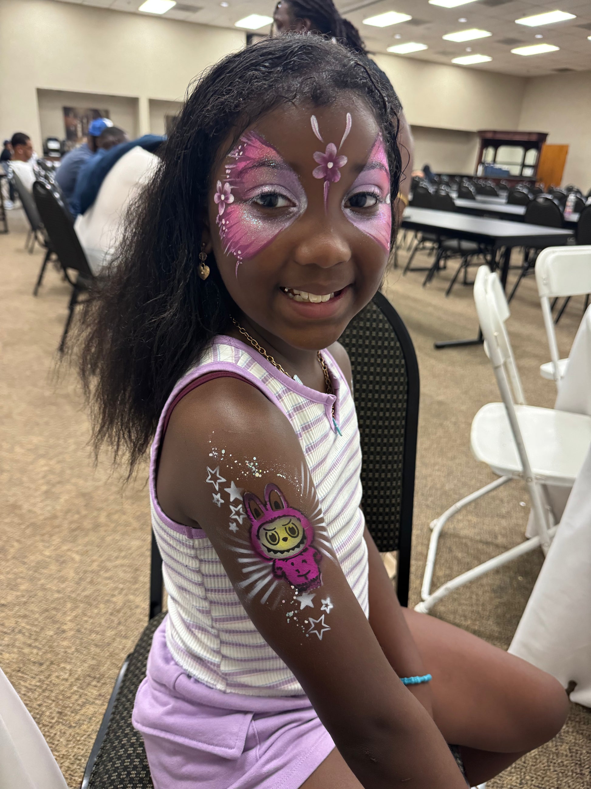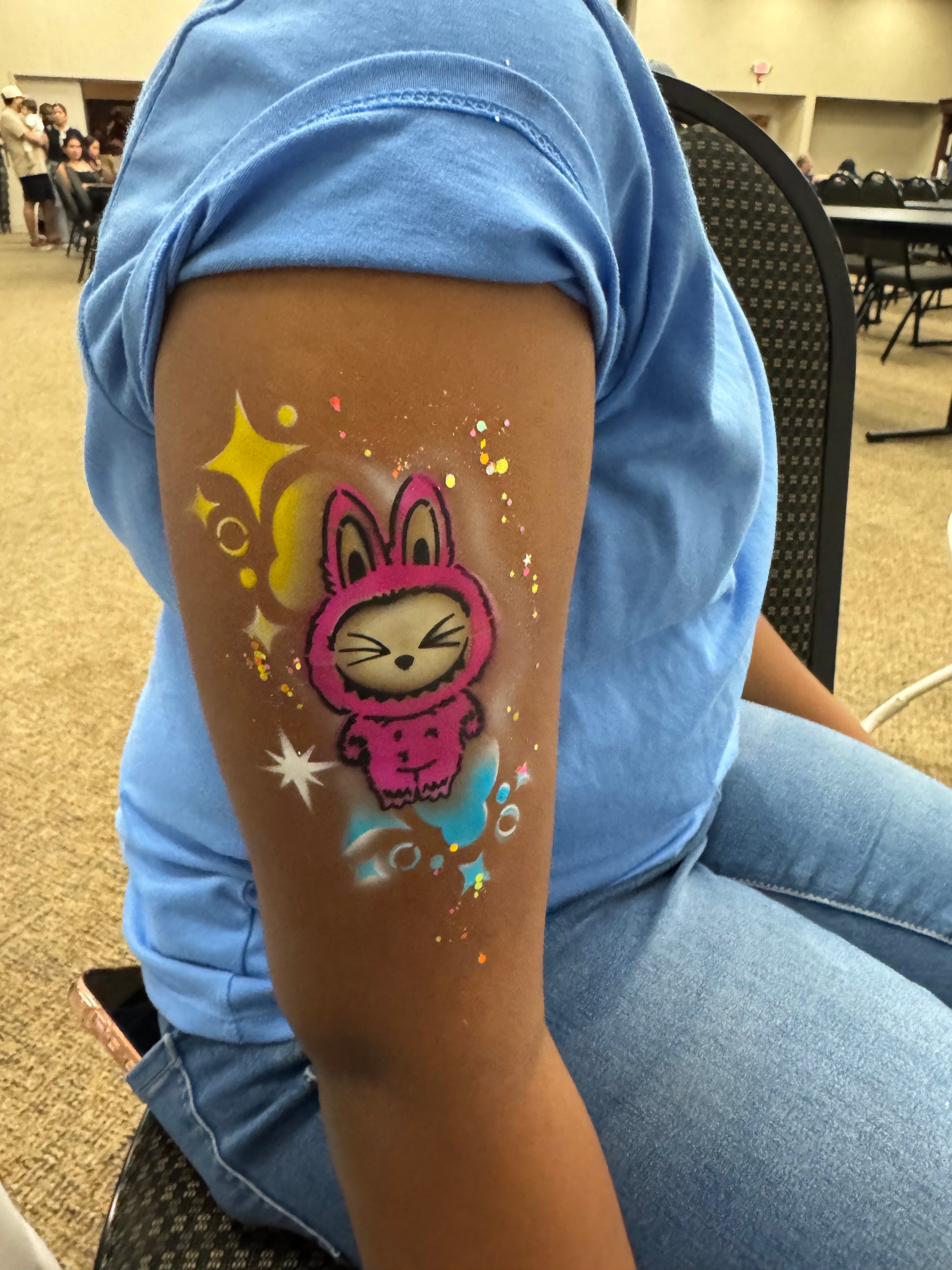The stencil is a bit taller than we normally do, but should still fit even little kids' arms.